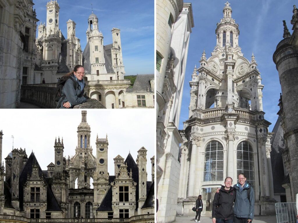 One of the central features of Chambord is the big ‘double helix staircase’ which has two spirals meaning that two people can use it at the same time without crossing paths and only the possibility of seeing each other through splits slits on the inner side of the staircase (top right pic). The bottom left pic is the center of the staircase and the top right is the view between spirals.